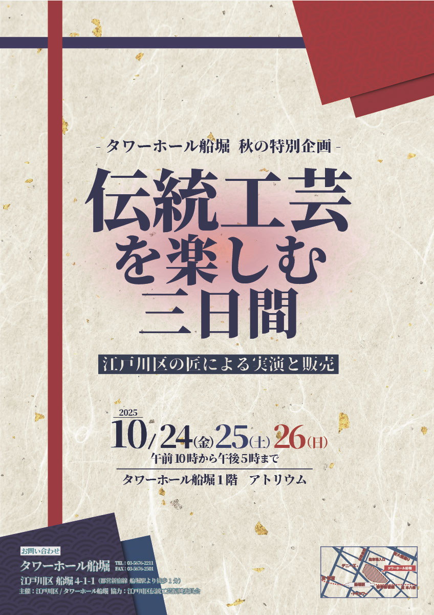 第3回、江戸川区伝統工芸会協力『江戸川区伝統工芸に知ろう!触れよう!体験しよう!』に、染色工房くさなぎも折染め体験で参加させて頂くこととなりました。